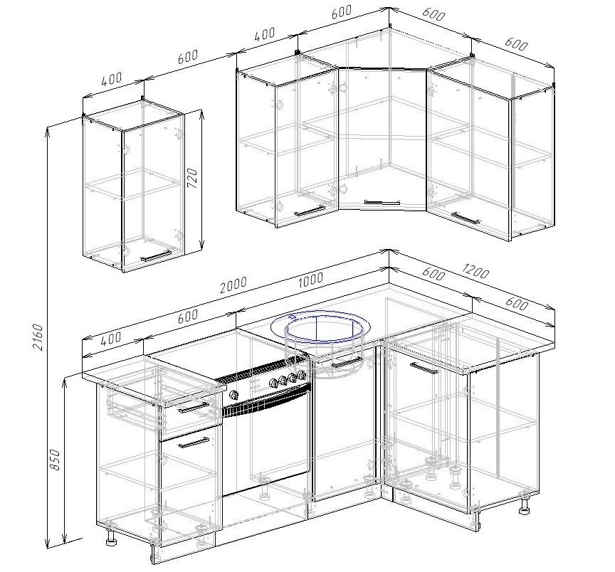 Каталог мебели/Мебель для Кухни/Кухонные гарнитуры/Угловые кухни